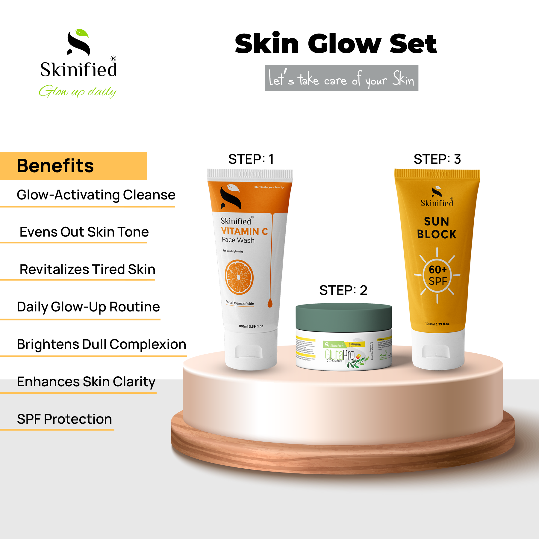 Follow with the Skinified GlutaPro Cream to Brightens dull and tired-looking skin.